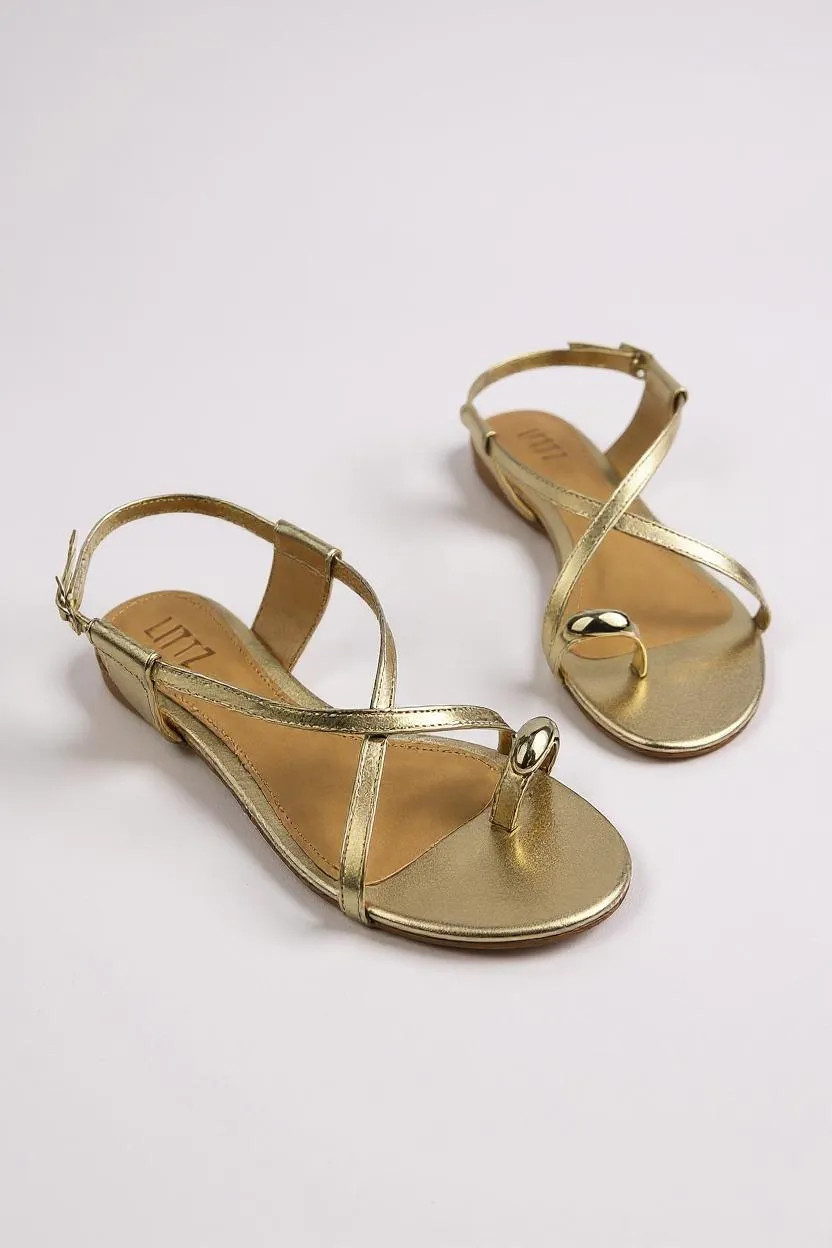 Sandalia Rasteira Littz Metalizada Com Adorno Ouro Light