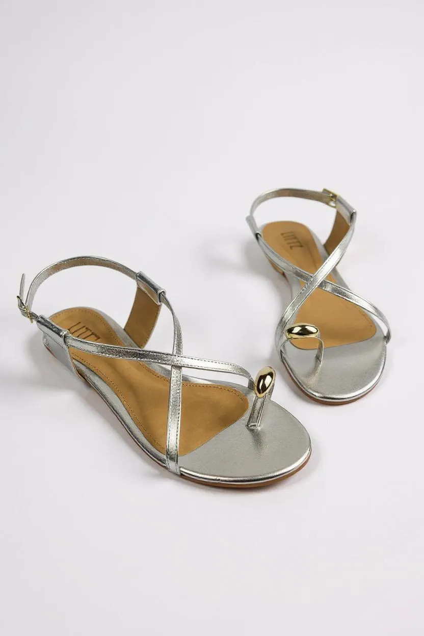 Sandalia Rasteira Littz Metalizada Com Adorno Prata