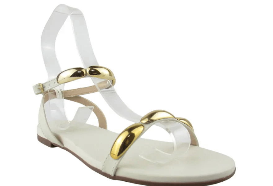 Sandalia Rasteira Maria Isabel Tachas Fivela Off White