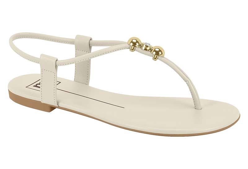 Sandália Rasteira Moleca Com Detalhes Dourados Branco Off