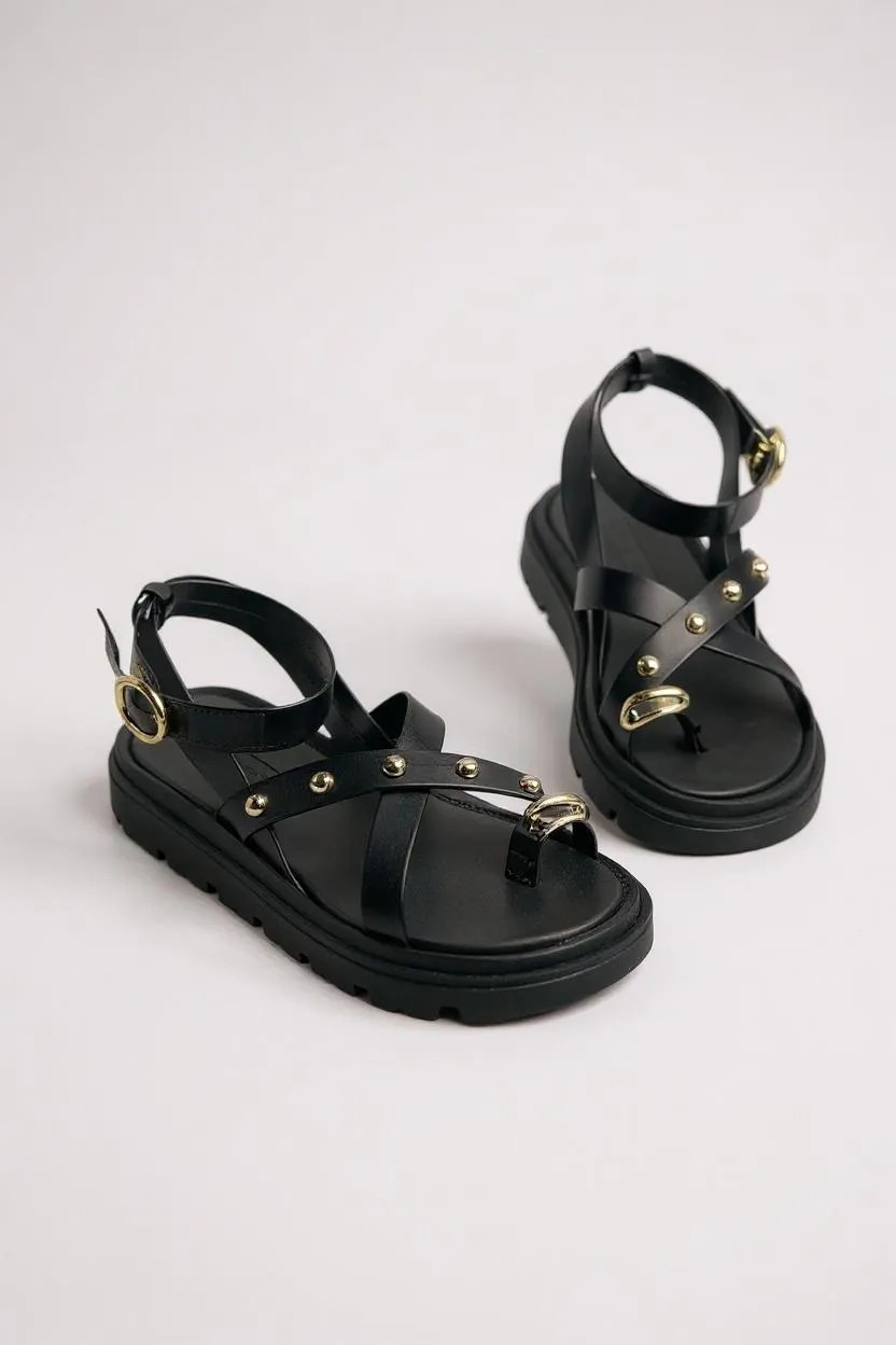 O conforto e estilo da Sandália Rasteira Moleca, perfeita para quem busca praticidade sem abrir mão da elegância. Com design robusto e tiras com detalhes em metal dourado, essa sandália combina modernidade e atitude para complementar seu look em qualquer ocasião. Sua palmilha macia e solado antiderrapante garantem conforto prolongado e segurança ao caminhar, ideal para o dia a dia ou passeios descontraídos.