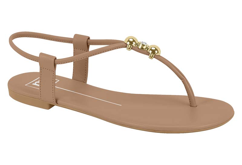 Sandália Rasteira Moleca Com Detalhes Dourados Nude