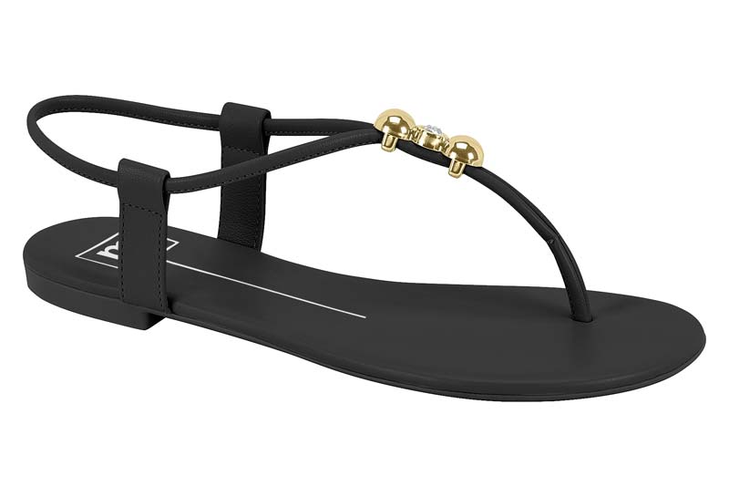 Sandália Rasteira Moleca Com Detalhes Dourados Preto