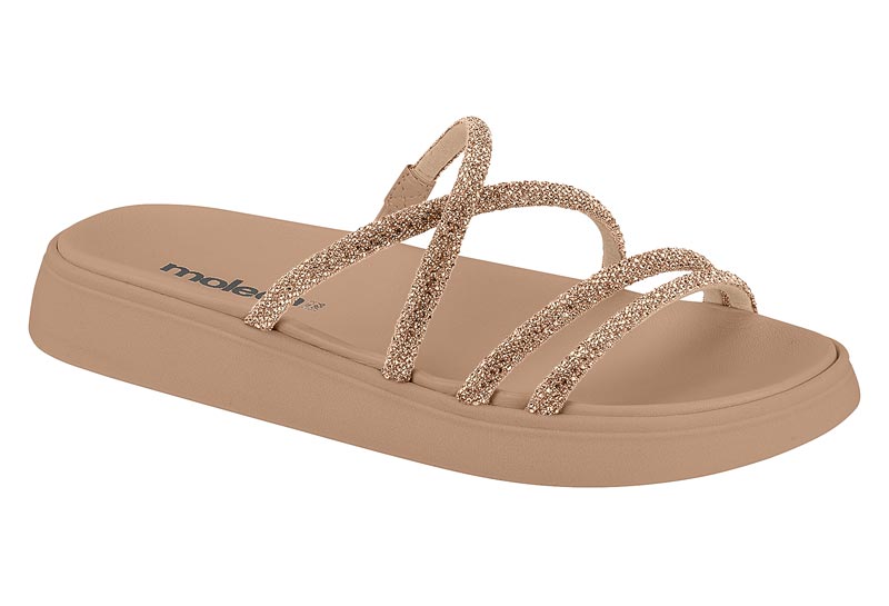 Sandália Rasteira Moleca Com Tiras Brilhantes Ouro Rosado