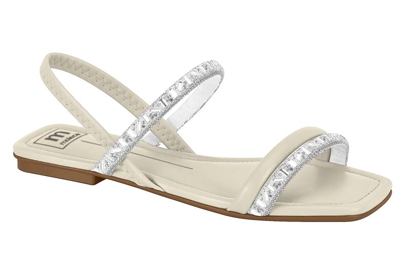 Sandália Rasteira Moleca Feminina Com Tiras Brilhantes Branco