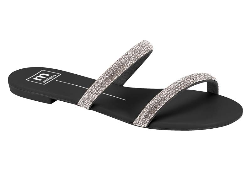 Sandália Rasteira Moleca Metalizada De Tiras Duplas Cristal/Preto