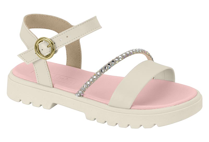 Sandalia Rasteira Molekinha Tira Com Strass Branco Off