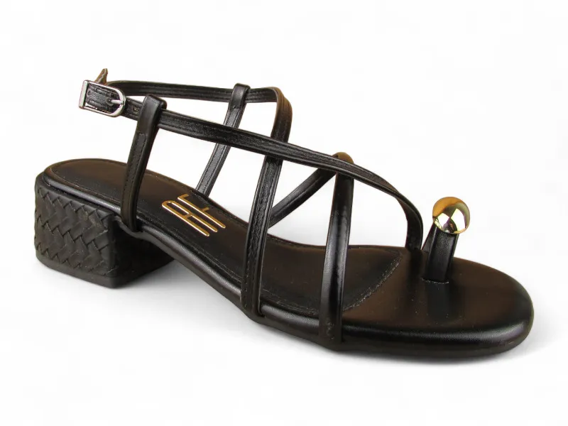 Sandalia Salto Bloco Anna Flor Tiras Dedo Com Adorno Preto