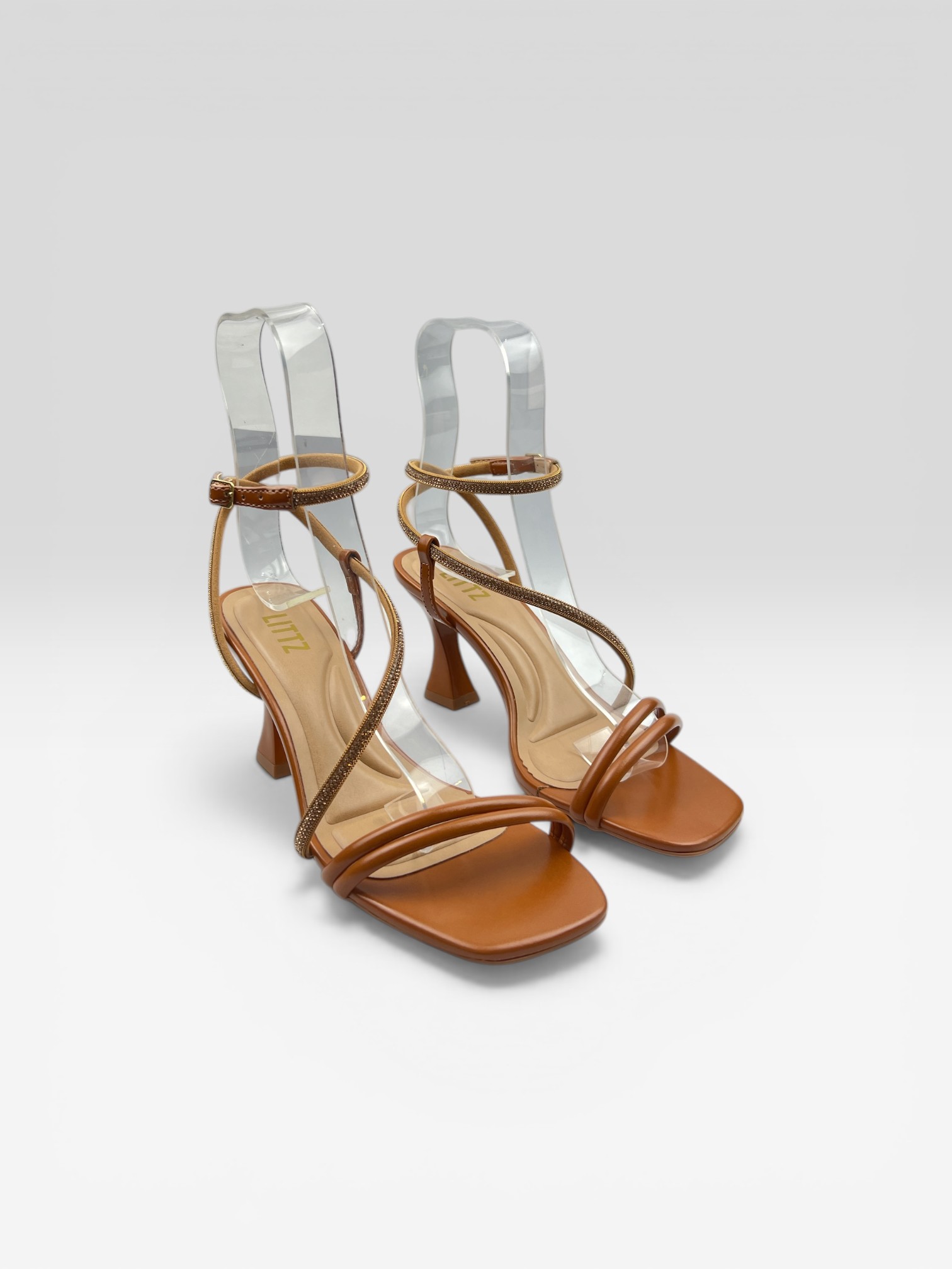 Modelo refinado com salto taça e delicadas tiras em strass que elevam qualquer visual.