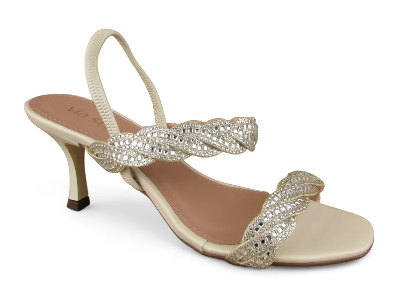 Sandalia Via Scarpa Salto Fino Tira Com Pedras Calce Facil Neve