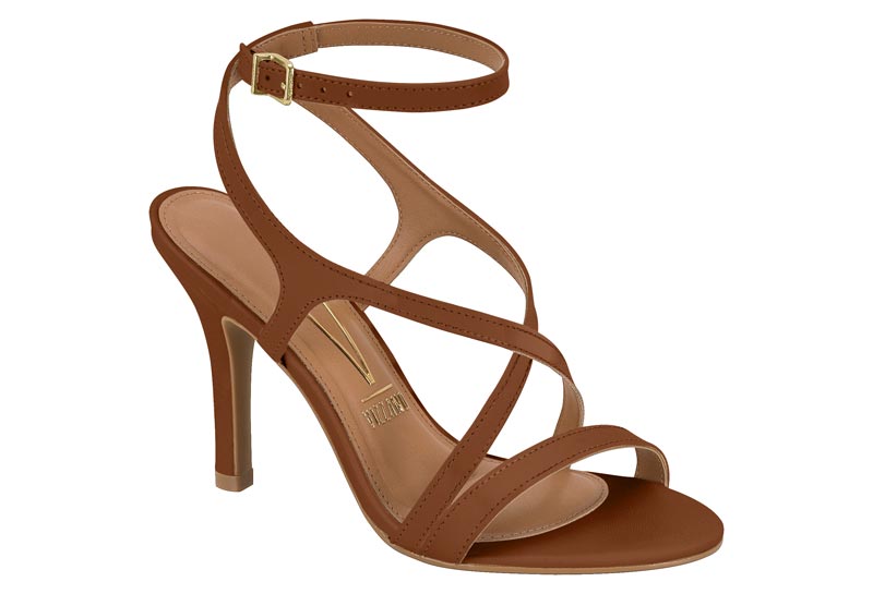 Sandalia Vizzano Feminina Salto Alto Com Tiras Finas Marrom