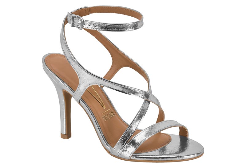 Sandalia Vizzano Feminina Salto Fino Com Tiras Cruzadas Prata