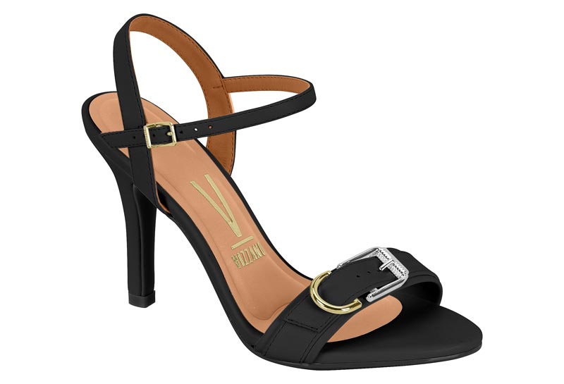 Sandália Vizzano Salto Alto Fino Detalhe Fivela De Metal Preto