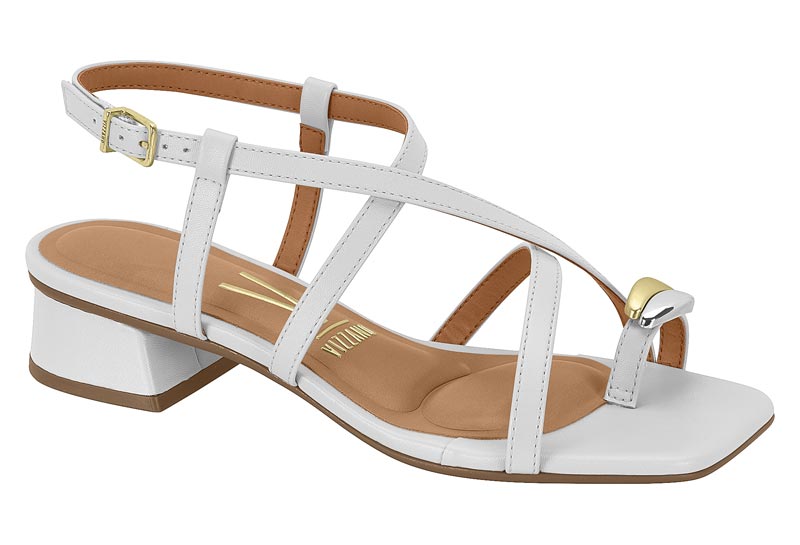 Sandalia Vizzano Salto Bloco Tira Com Fivela Adorno Branco