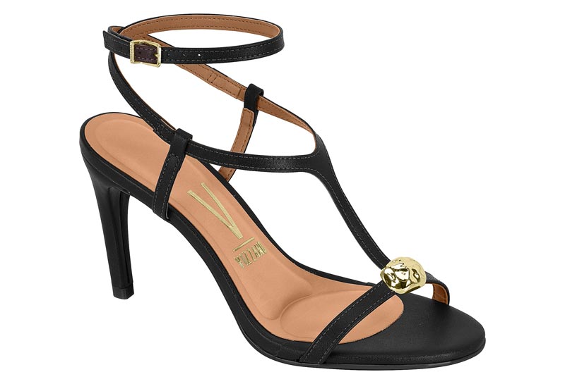 Sandalia Vizzano Salto Fino Tira Com Fivela Com Tacha Dourada Preto