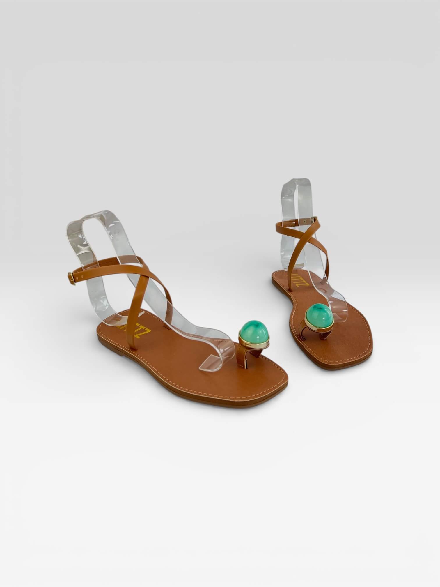 Sandália Feminina Com Amarração Confortável Carvalho/Turquesa