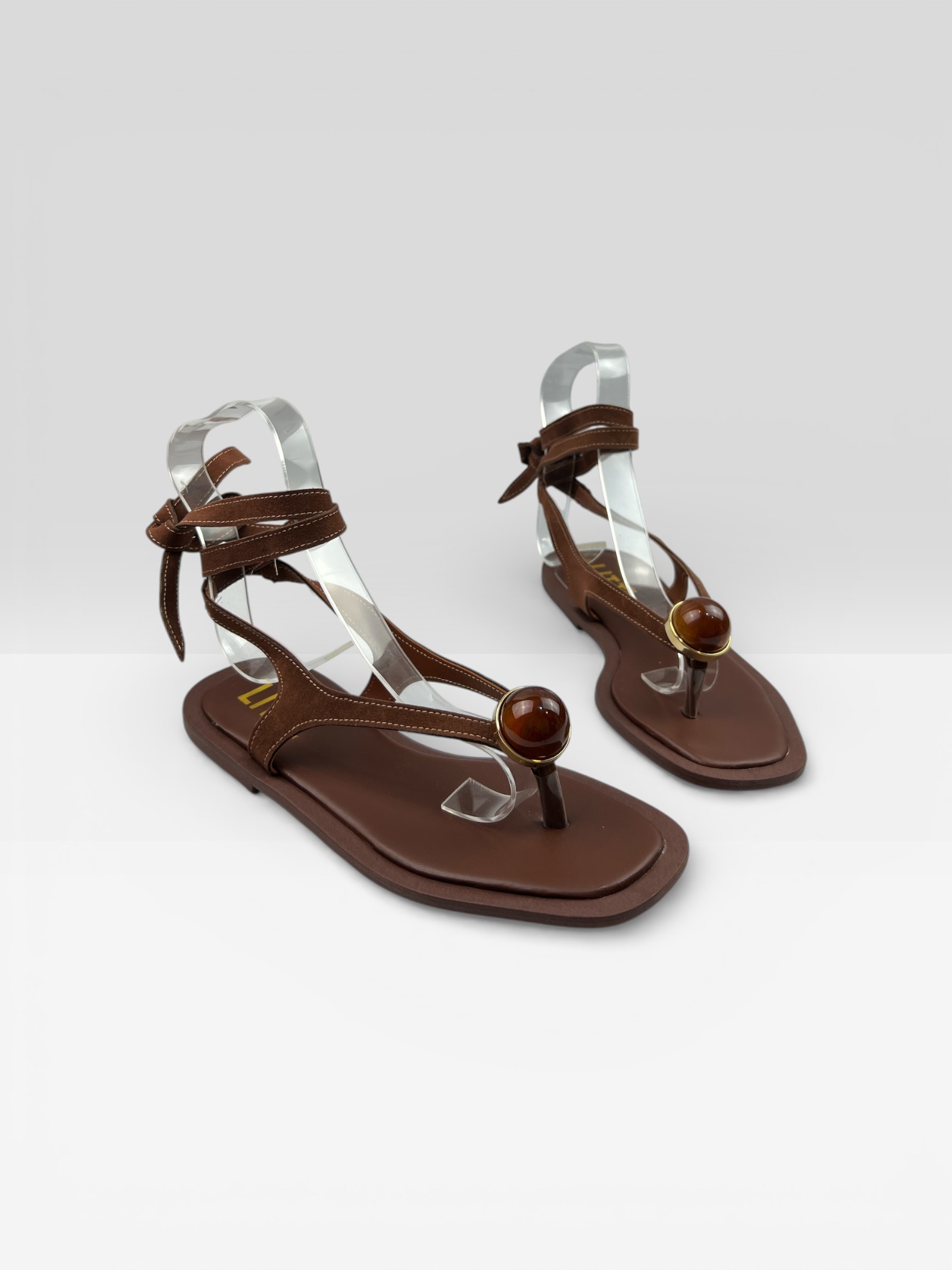 Sandália Rasteira Feminina Amarração E Fivela Marrom