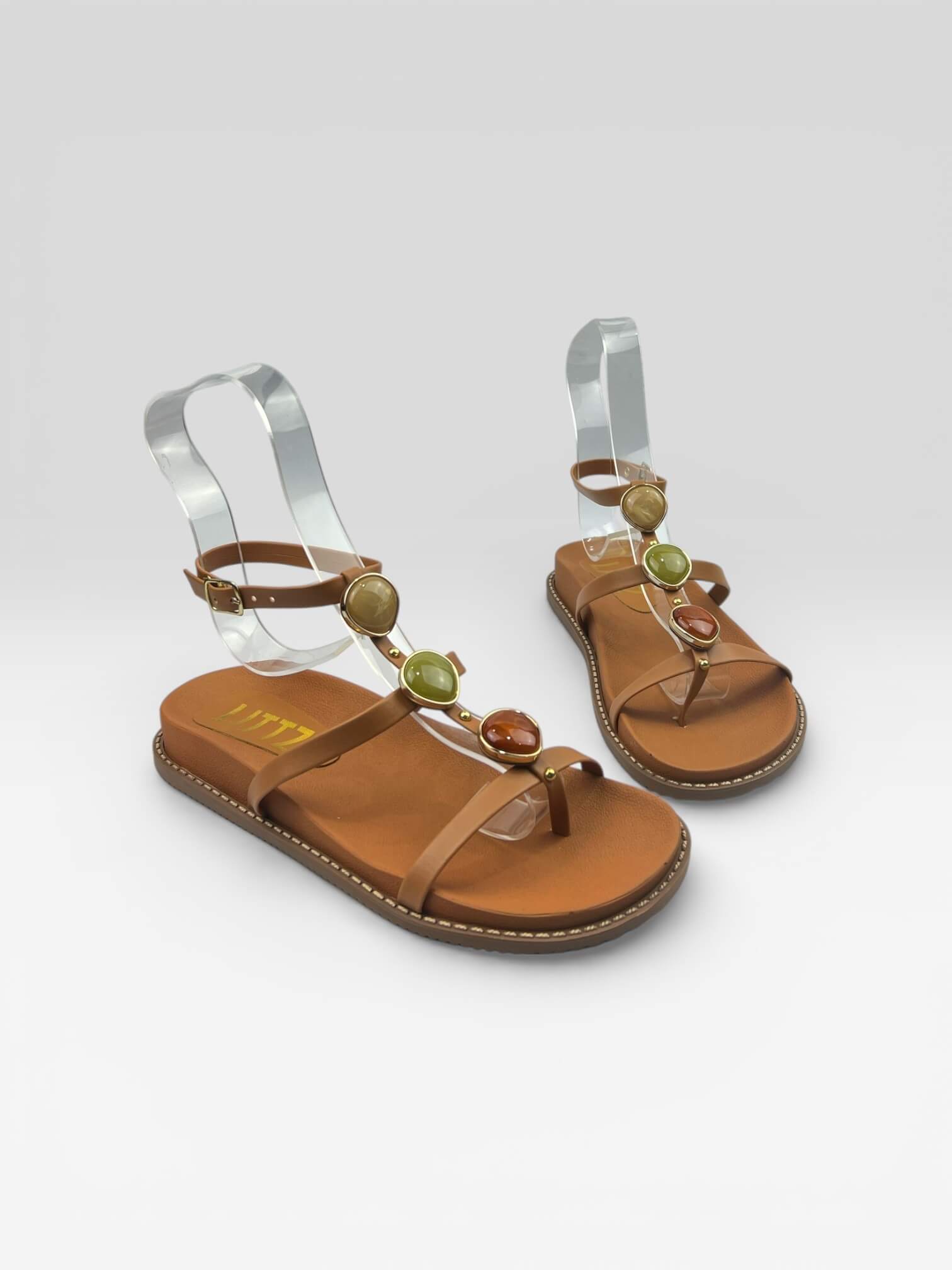 Sandália Rasteira Feminina Com Pedrarias E Fivela P898194 Terra/Safari