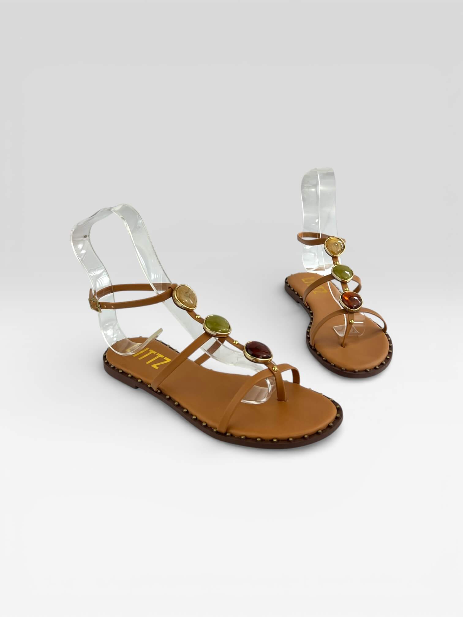 Sandália rasteira feminina com tiras delicadas e aplicação de pedras no cabedal, trazendo charme e sofisticação ao visual. Possui fechamento no tornozelo e palmilha confortável, perfeita para compor looks elegantes e modernos.