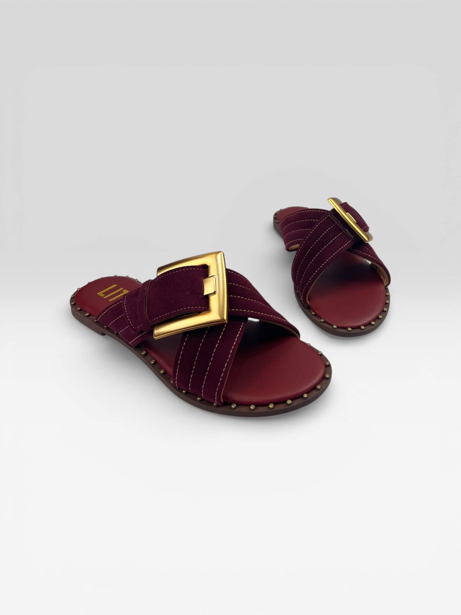 Sandália Slide Feminina Com Fivela Decorativa Vinho