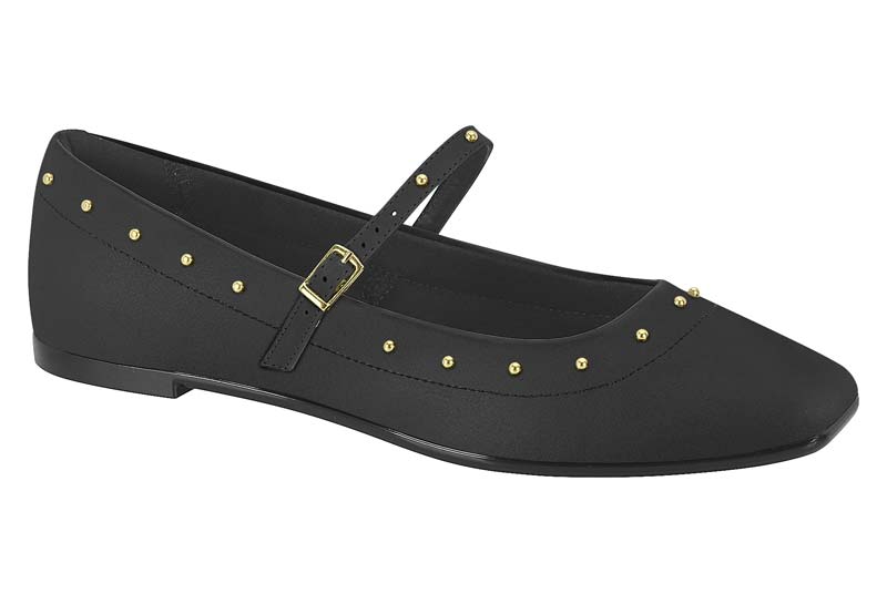 Sapatilha Moleca Boneca Com Fivela Bico Redondo Com Tachas Douradas Preto