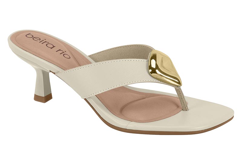 Tamanco Beira Rio De Salto Médio Com Detalhe Metálico Branco Off
