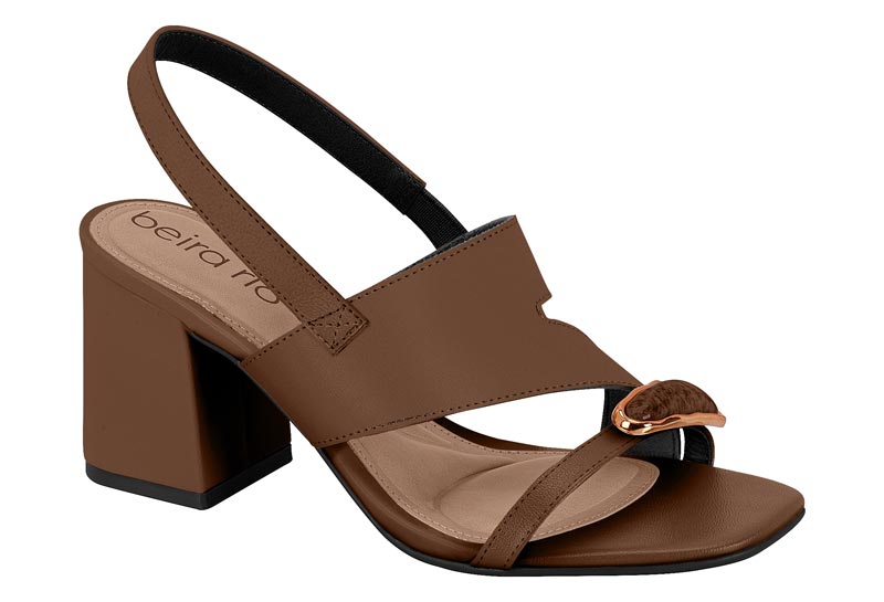 Tamanco Beira Rio Feminina Salto Bloco Com Detalhe Em Pedra Conhaque