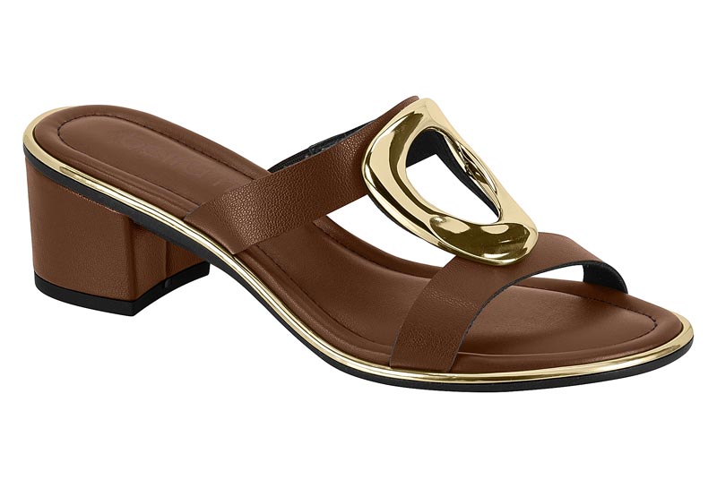 Tamanco feminino moderno e sofisticado, com salto bloco médio que garante conforto e estabilidade no uso diário. O design conta com tiras cruzadas e aplique metalizado dourado que traz um toque de elegância. Prático de calçar e versátil, combina perfeitamente com produções casuais ou mais refinadas.