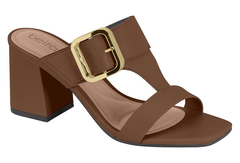 Tamanco Beira Rio Feminino Salto Bloco Com Fivela Conhaque