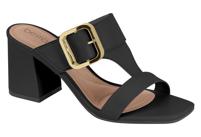 Tamanco Beira Rio Feminino Salto Bloco Com Fivela Preto