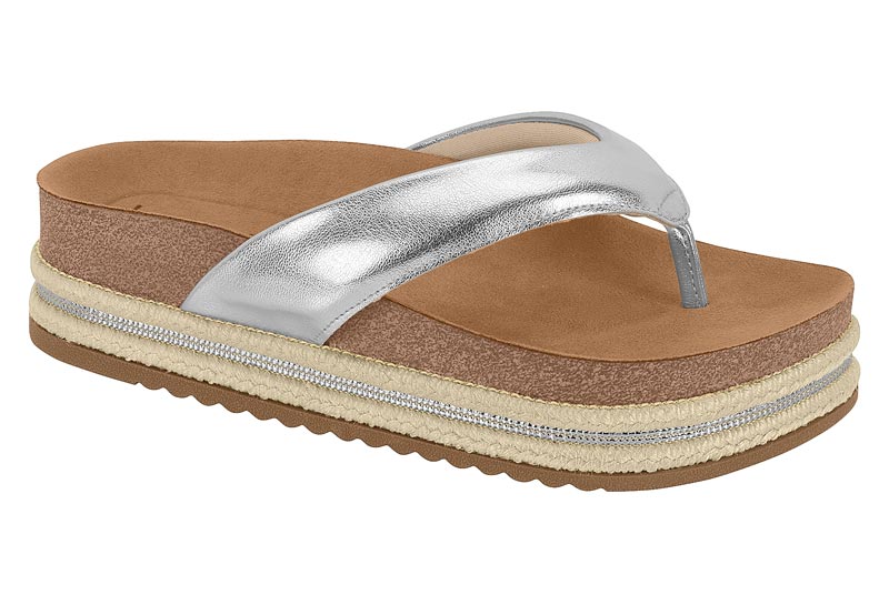 Tamanco Flat Beira Rio Metalizado Tira De Dedo Calce Facil Prata