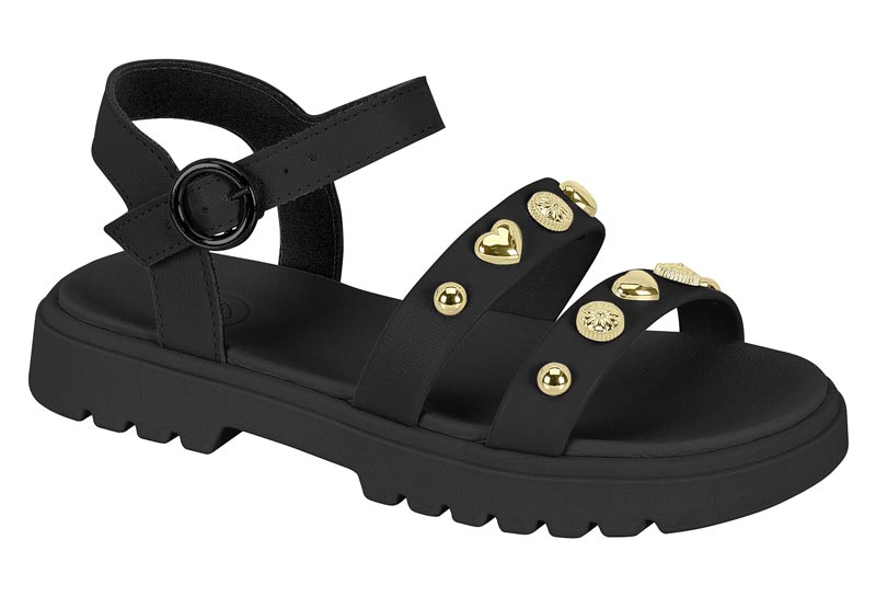 Tamanco Infantil Molekinha Confortavel Com Pedras Douradas Preto