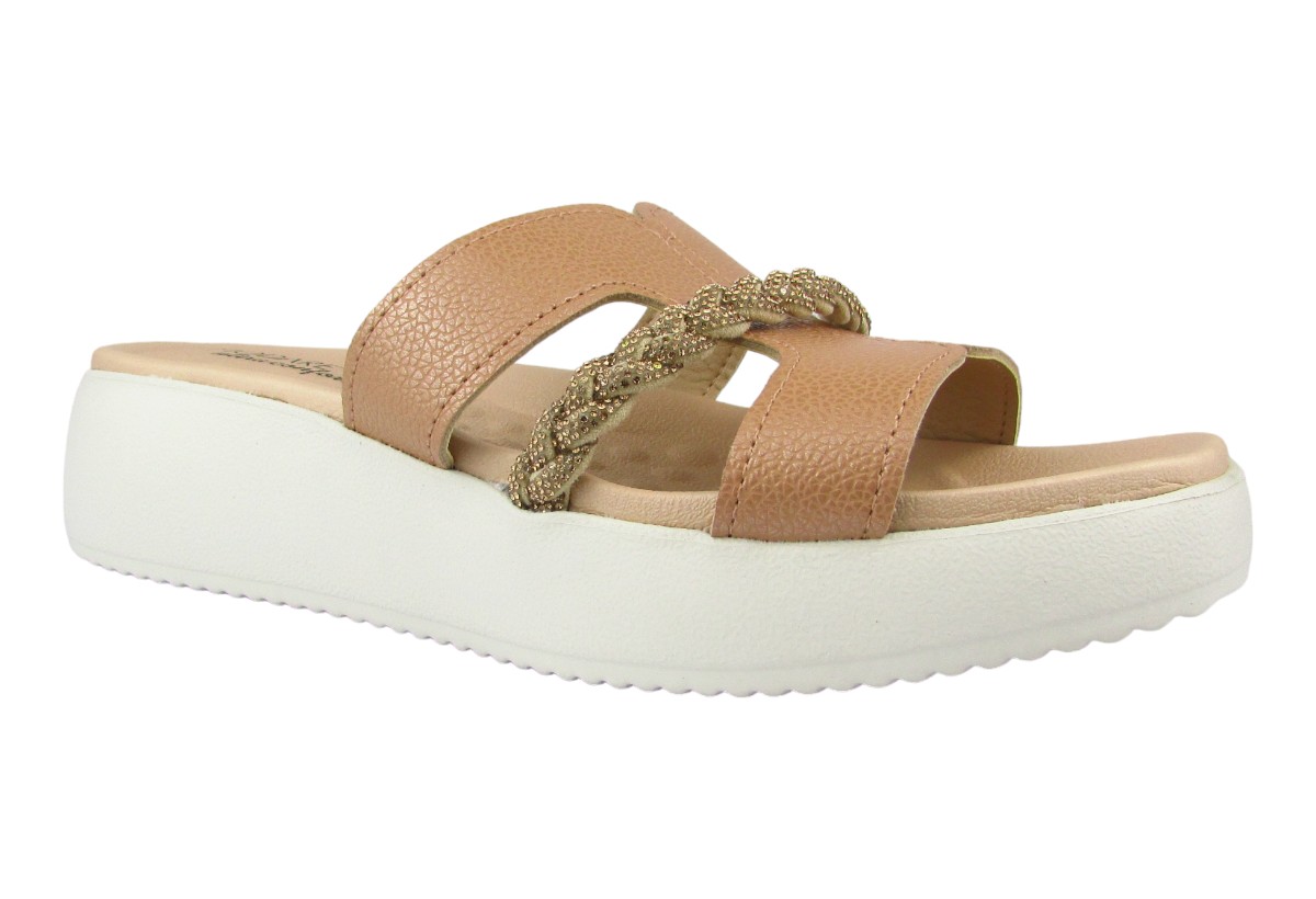 Tamanco Modare Calce Facil Flatform Tira Larga Com Strass Nude/Dourado
