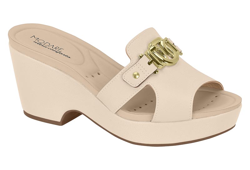 Tamanco Modare Meia Pata Conforto Detalhe Dourado Creme