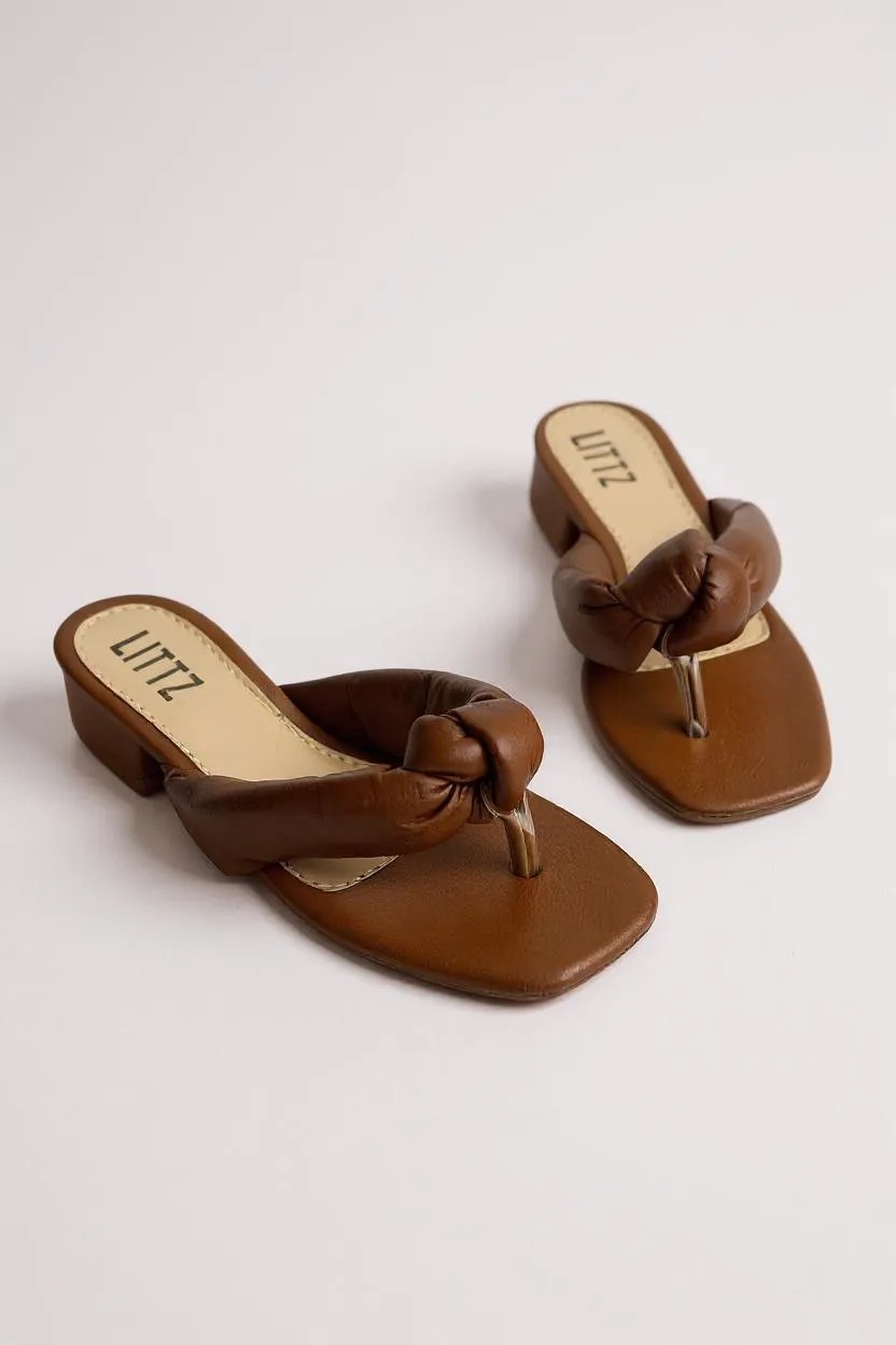 Tamanco Moleca Com Salto Médio E Tira Nó Estilo Rasteira Confortável Caramelo