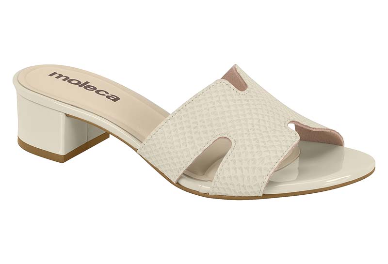 Tamanco Moleca Feminino De Salto Bloco Com Recortes Modernos Branco Off