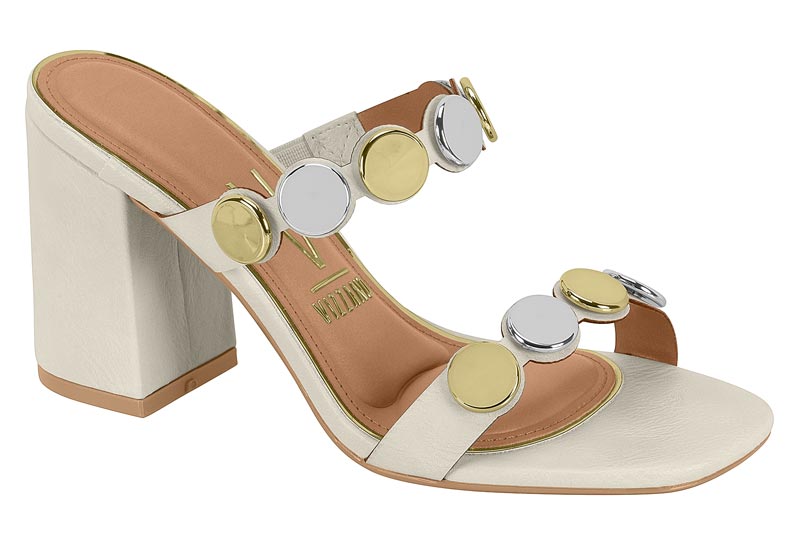 Tamanco Vizzano Salto Bloco Tira Com Tachas Calce Facil Branco Off