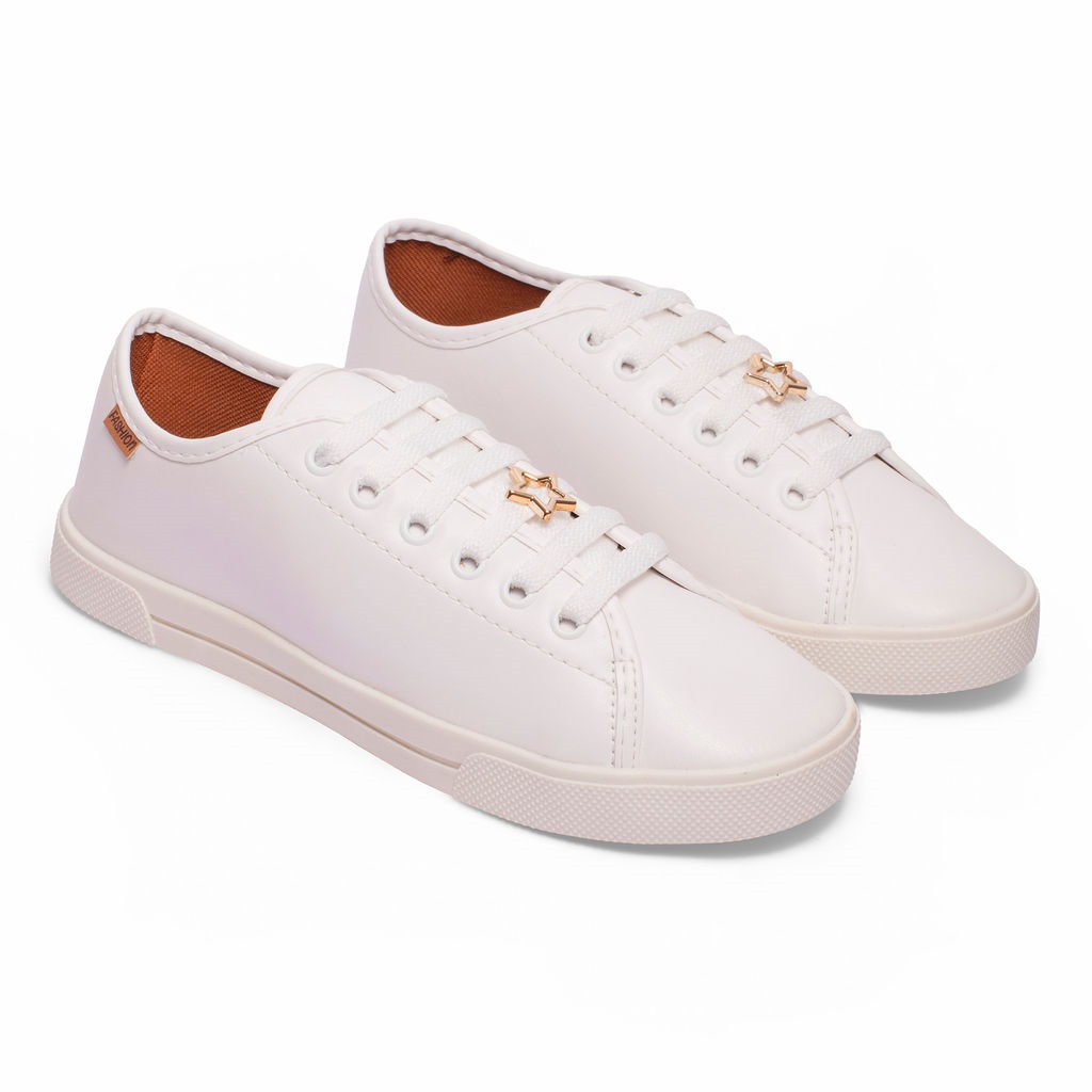 Feito com materiais de alta qualidade, o modelo possui acabamento macio, solado emborrachado que garante aderência e fechamento por cadarço para melhor ajuste aos pés. O detalhe em formato de estrela na lateral adiciona um charme especial, tornando o tênis uma peça-chave para compor produções casuais e urbanas.