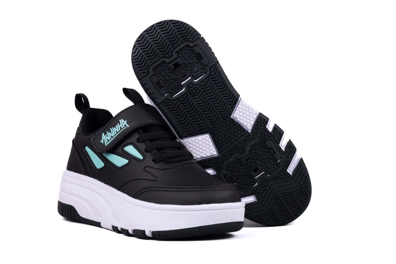 Tênis Infantil Anninha Tira Com Velcro Com Rodinhas Skate Preto/Verde-Agua