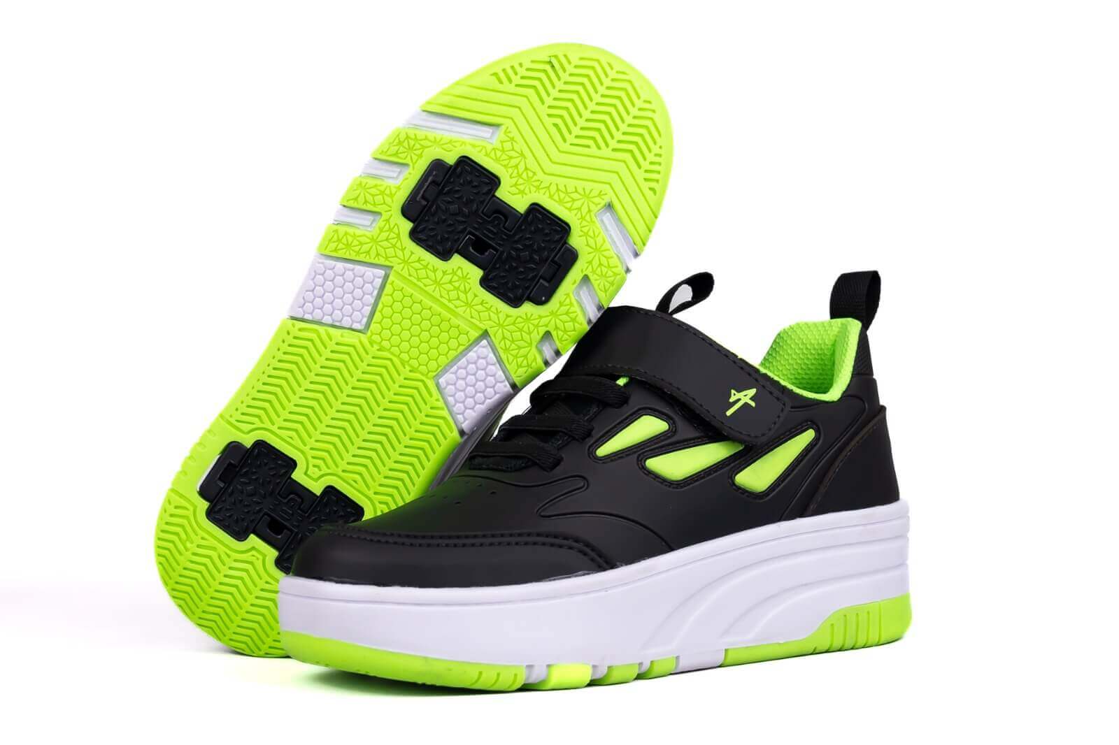 Tênis Infantil Anninha Tira Com Velcro Com Rodinhas Skate Preto/Verde Limao
