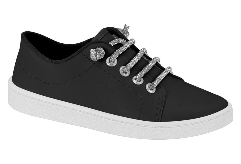 Tenis Infantil Casual Molekinha Com Strass E Cadarço Preto Branco
